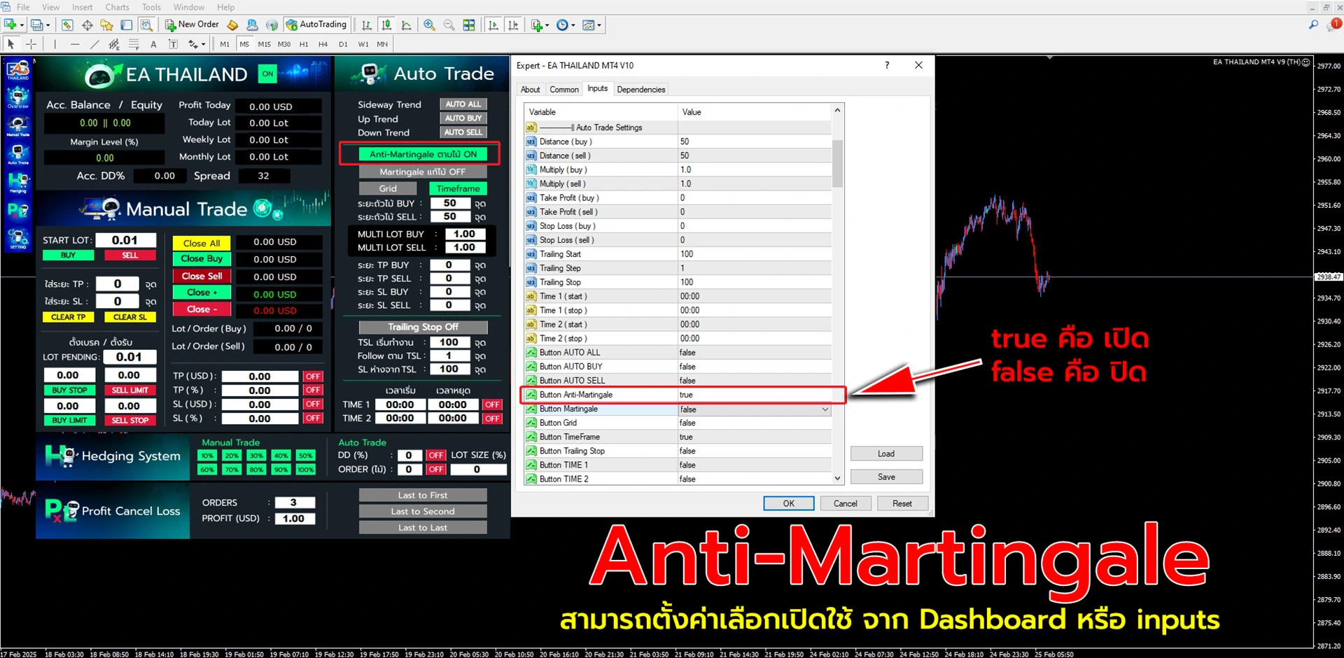ข้อจำกัดความรับผิดชอบด้านกฎหมาย : การให้บริการเครื่องมือเทรดอัตโนมัติผ่าน EA Thailand ไม่มีการรับรองว่าผู้ใช้จะได้รับผลตอบแทนหรือผลกำไรใด ๆ จากการลงทุน การตัดสินใจลงทุนเป็นความรับผิดชอบของผู้ลงทุนแต่เพียงผู้เดียว ผู้ลงทุนควรศึกษาข้อมูลและทำความเข้าใจในความเสี่ยงที่เกี่ยวข้องอย่างรอบคอบก่อนการลงทุน และหากจำเป็น ควรขอคำแนะนำจากผู้เชี่ยวชาญด้านการเงินหรือที่ปรึกษาทางกฎหมาย
